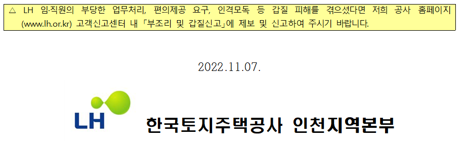 때에는 반드시 LH 고양권 주거복지지사에 통보하여야 합니다.