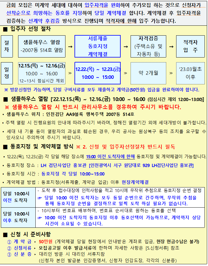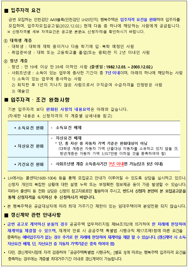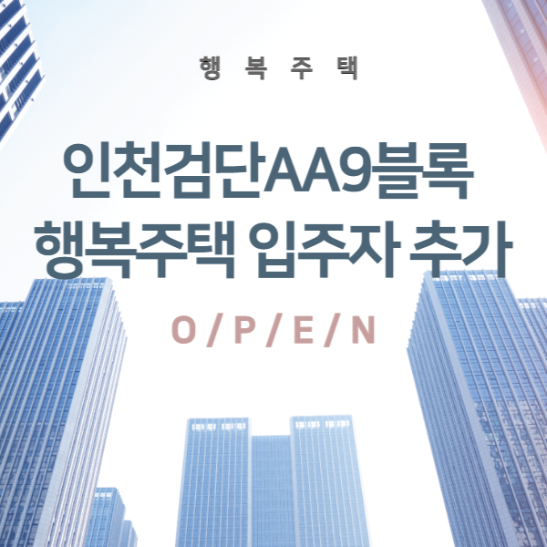 인천검단AA9블록 행복주택 14㎡형 입주자 추가모집 [입주자격완화·선착순동호지정·선계약후검증]