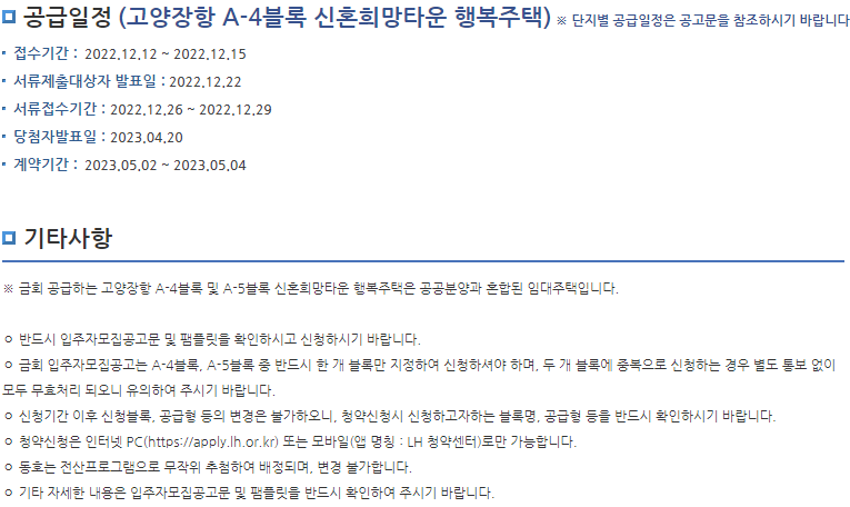 고양장항 A-4블록·A-5블록 신혼희망타운 행복주택 입주자 모집공고