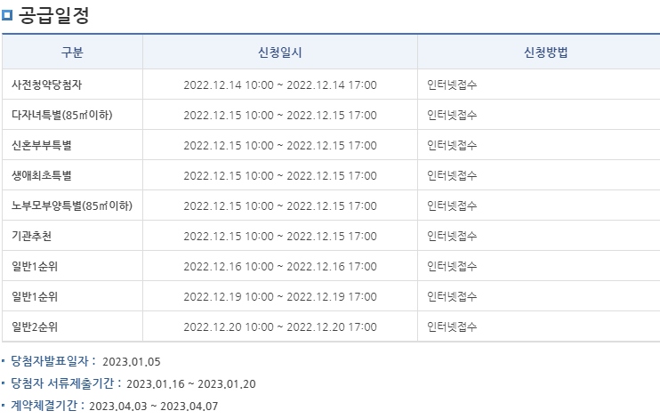 ■ 신청접수 시 신청자격을 검증하지 않고 신청자의 입력사항만으로 당첨자를 결정하므로 공고문의 공급유형별 신청자격을 사전에 반드시 확인하시기 바랍니다.