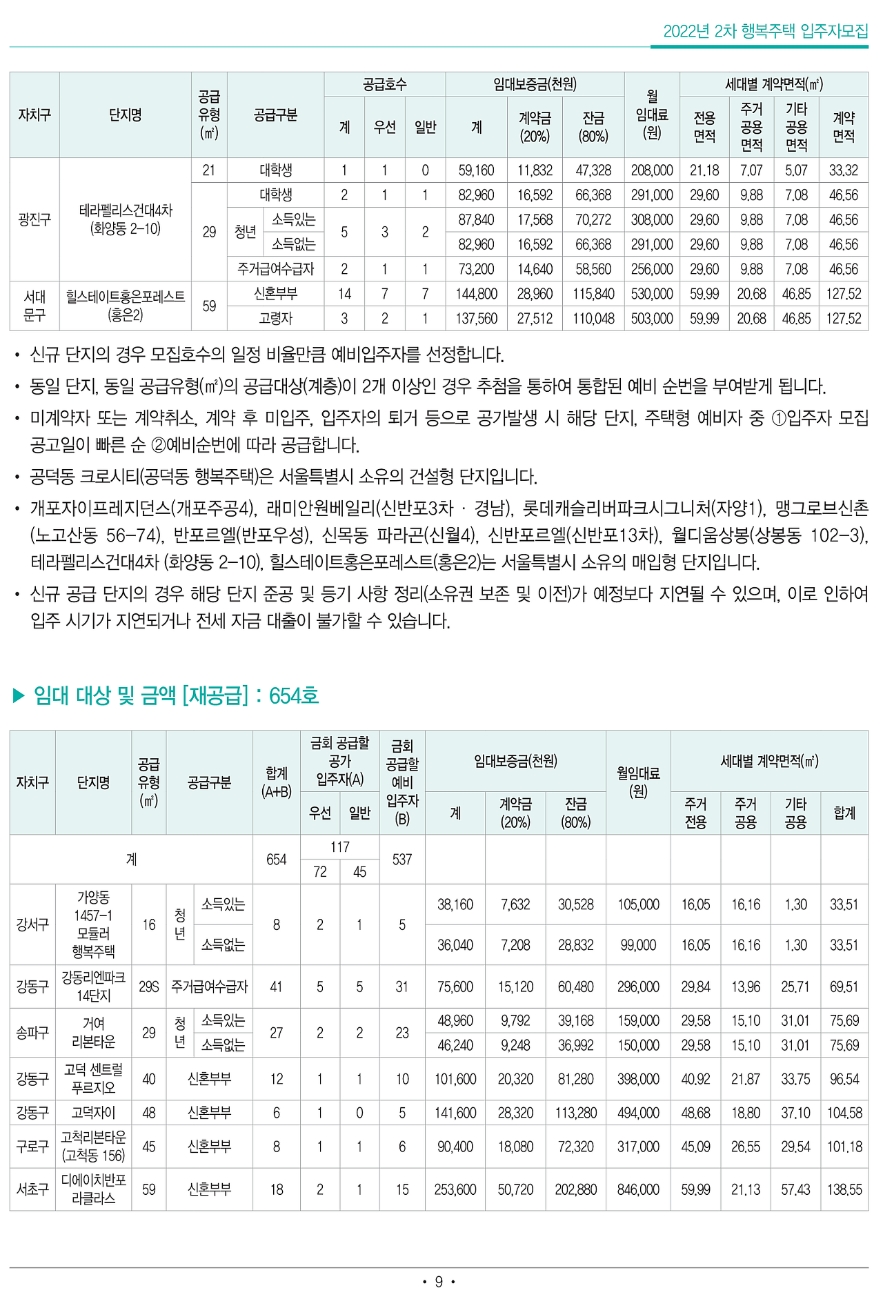 ■ 공급호수: 신규공급 966호, 재공급 654호(예비입주자 모집 포함)