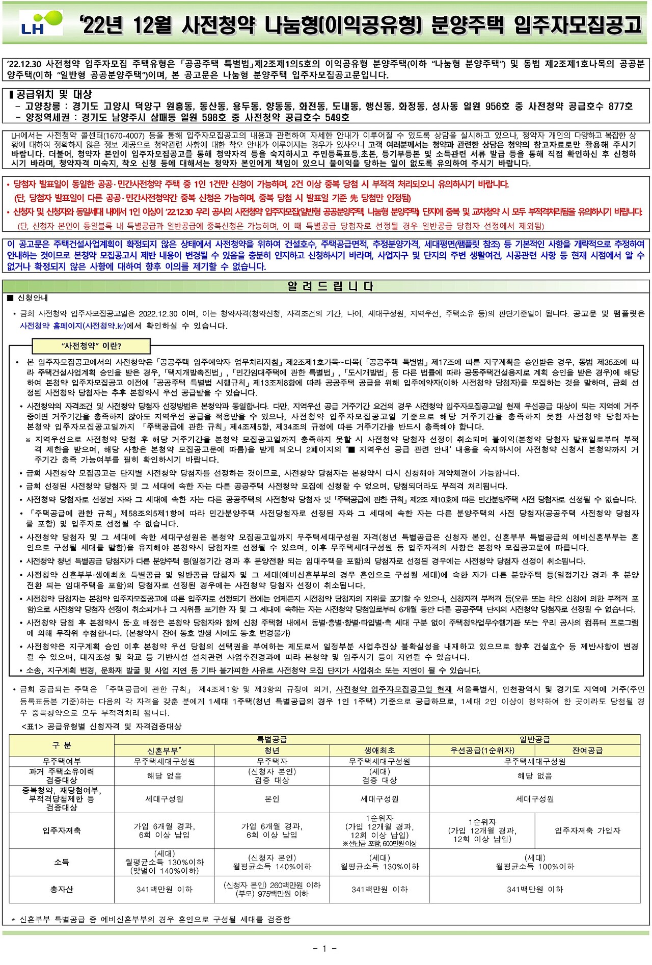# 2022년 12월 사전청약 공공분양주택(나눔형) 입주자모집공고