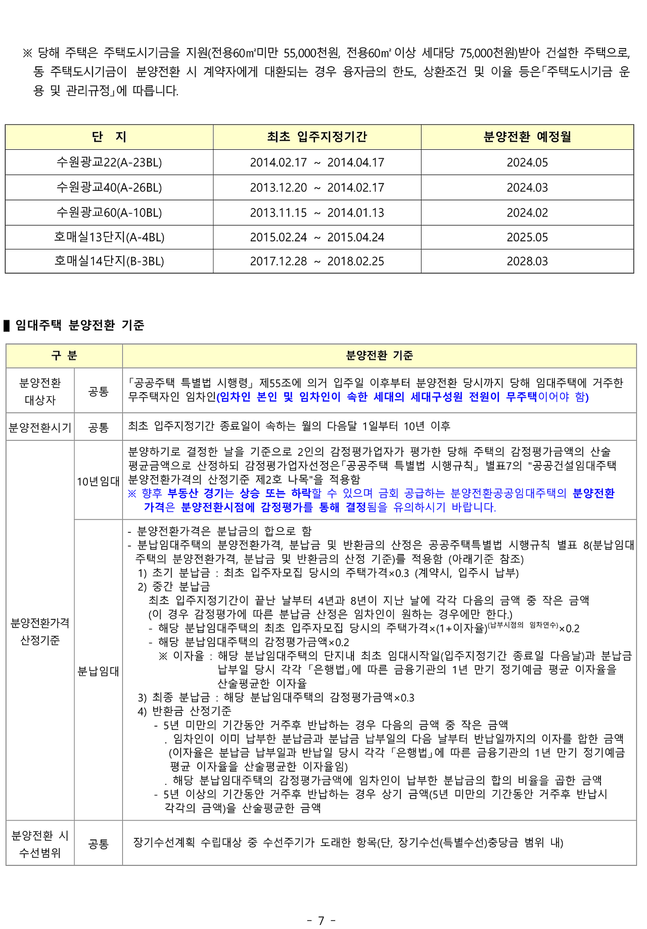 ■ 본 예비입주자모집공고문은 현재 공가 및 향후 해약이 발생할 경우를 대비하여 모집하는 것으로 예비입주자로 선정되었다 하더라도 예비순번에 따라 실제 입주 시까지는 상당기간이 소요될 수 있으며, 예비입주자의 지위는 임대기간 내에만 그 자격이 유지되고 분양전환이 개시되면 예비입주자로서의 지위는 자동소멸됩니다.