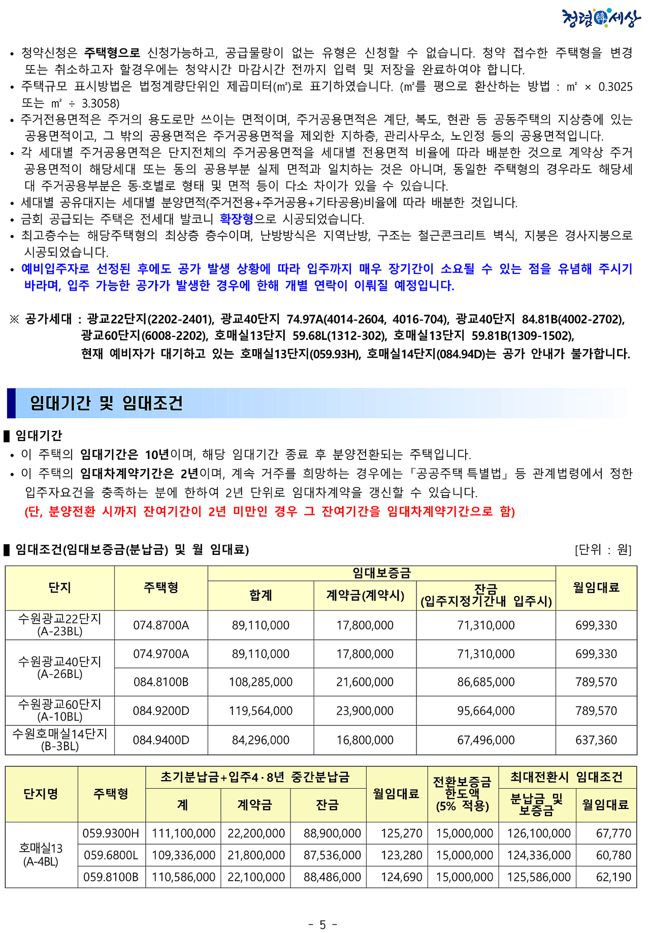 * 기타 상세 내용은 입주자 모집공고문을 통해 충분히 확인하시고 신청하시기 바랍니다.